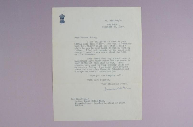 1957年11月25日賈瓦哈拉爾·尼赫魯致宋慶齡信